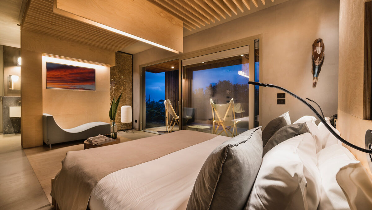 The resort offers an exclusive collection of rooms, suites and lodges, each combining natural materials, local craftsmanship and modern comfort. Even the entry-level rooms are generously proportioned, featuring sleek, contemporary interiors that feel newly designed and impeccably maintained. Highlights include the Exclusive Suite with a private terrace and heated Jacuzzi pool, and the Grand Suite, positioned at the highest point of the estate with panoramic views across both the sea and the volcano.