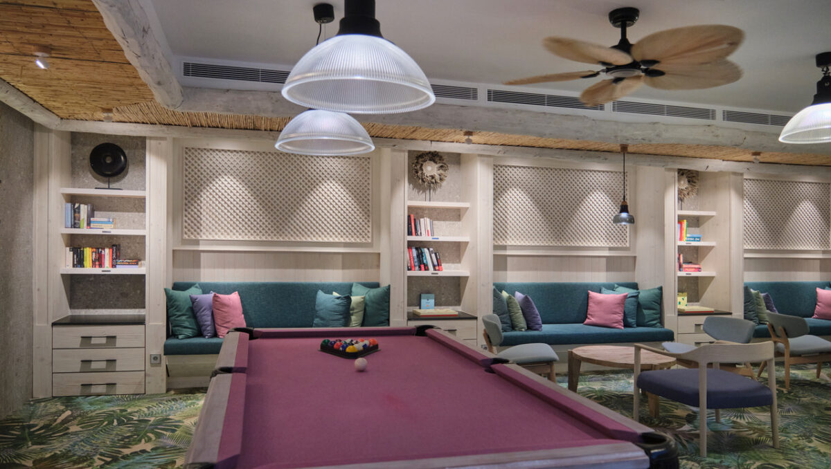 The rooftop is the heart of the hotel, offering a swimming pool, relaxed bar and U Vicenç restaurant, where Mallorcan flavours are reimagined by celebrated chef Santi Taura. As the sun sets behind the rugged cliffs of Cavall Bernat, guests can enjoy cocktails and fine dining before the night sky fills with stars. On the ground floor, U Mayol brings a more traditional seafaring spirit with rice dishes, grilled fish and sharing plates inspired by the Mediterranean. Wellbeing is a central theme, with a Natura Bissé spa and wellness studio featuring a thermal pool, sauna, steam bath and relaxation spaces. Cyclists are well catered for with a state-of- the-art bike centre, while leisure seekers can unwind in the cinema room or explore the hotel’s curated library.