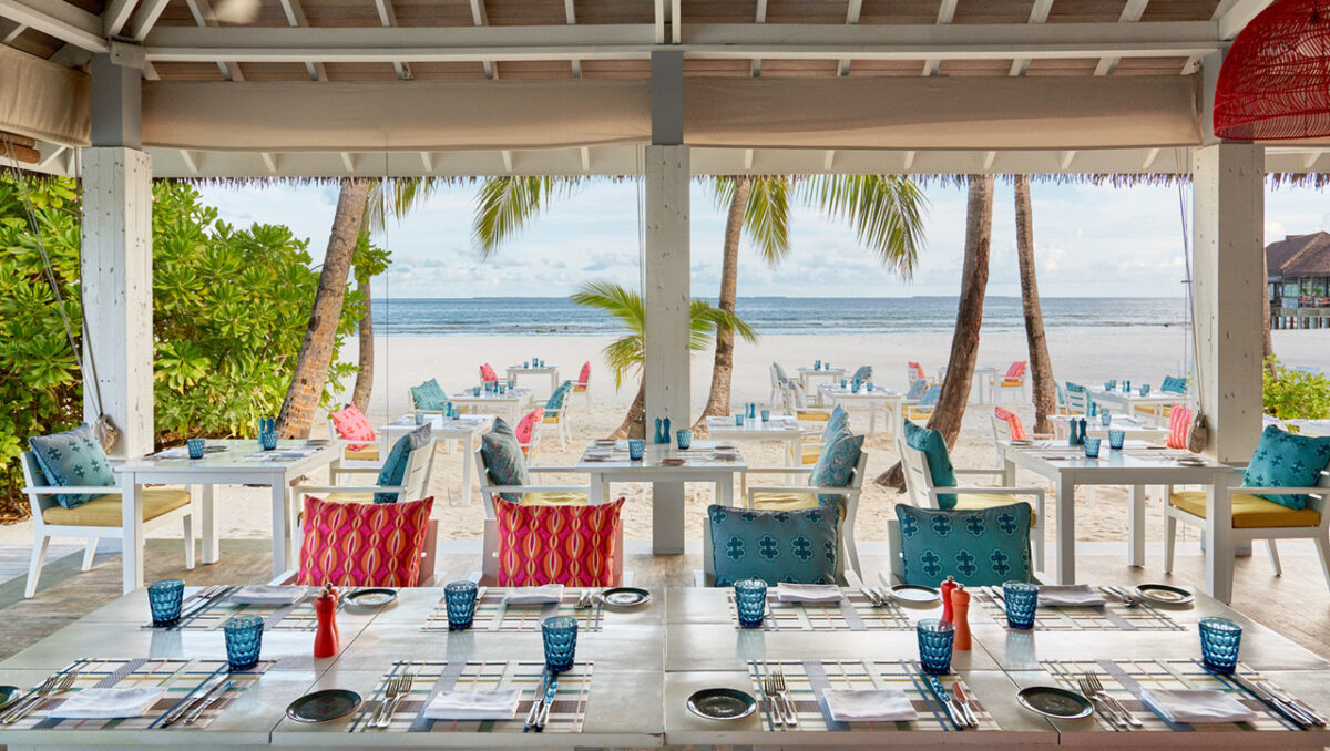 Finolhu’s dining philosophy embraces bold flavours and global influences. Kanusan presents elegant Japanese dishes above the water, while Arabian Grill showcases aromatic North African and Middle Eastern cuisine. The Crab Shack, set halfway along the sandbank, offers rustic charm, grilled seafood and barefoot lunches to the sound of the waves. At Beach Kitchen, themed evenings and international favourites are enjoyed with views over the lagoon. As the sun sets, the Beach Club becomes the island’s social heart – a chic space for DJ sets, live entertainment and sunset gatherings that capture Finolhu’s vibrant spirit. Wellbeing is woven naturally into island life. Fehi Spa sits among tropical foliage, offering treatments guided by nature and traditional healing. Yoga sessions, aerial fitness, diving, water sports and art workshops encourage exploration and joy.